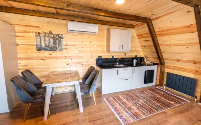 Misafirlerimiz bu yemekleri modern ama tamamen doğa dostu malzemeler ile yapılmış evlerinin balkonlarında ya da sıcacık yemek salonumuzda muhteşem manzaraya karşı ailece mutlu bir şekilde yiyebilsin.