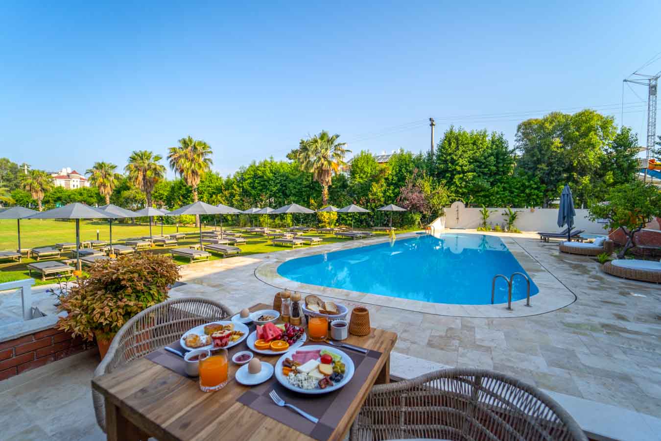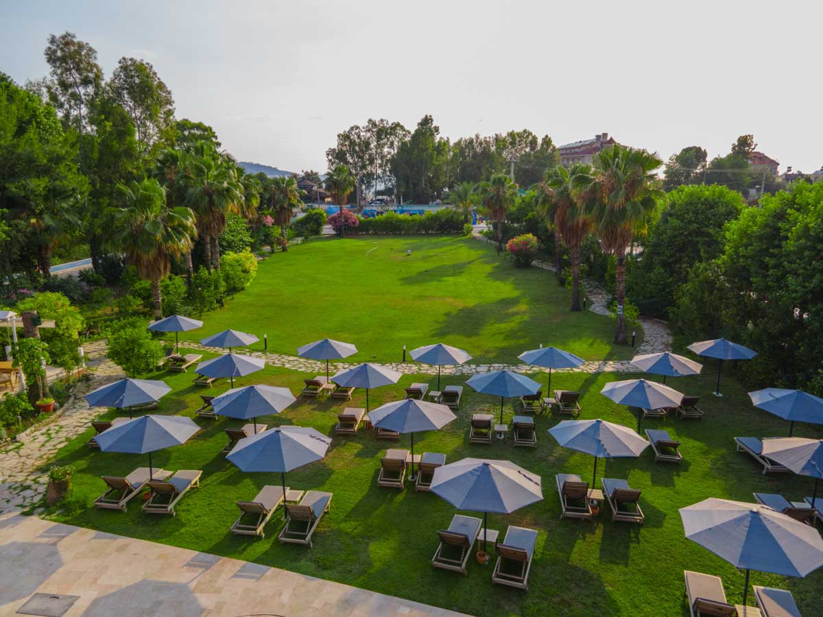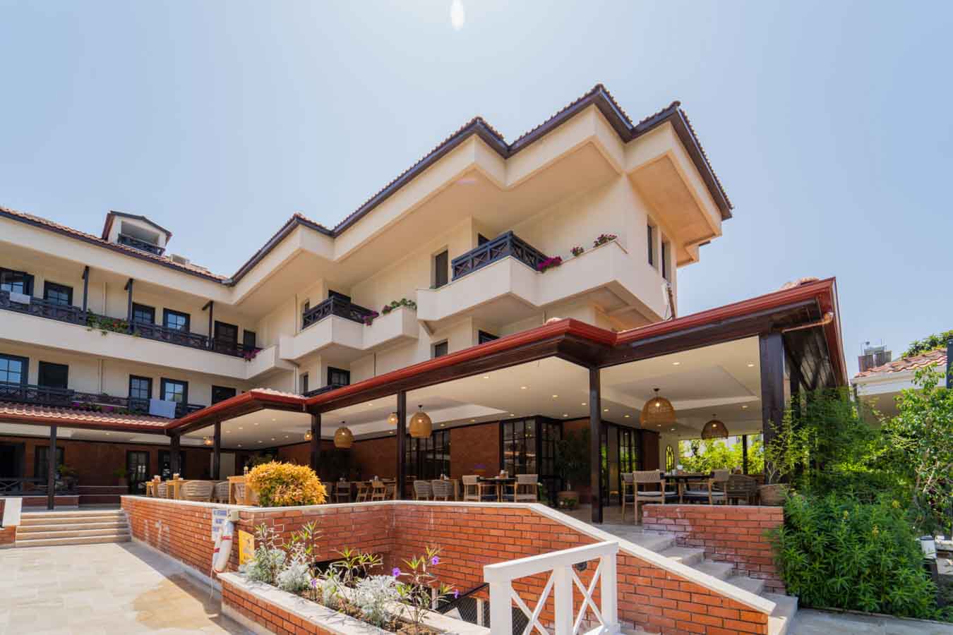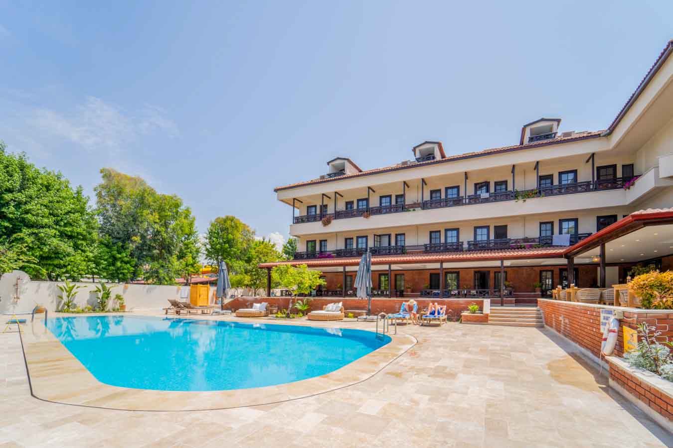 Otelden yaklaşık 140 m uzaklıktaki Çalış plajına ve sahildeki bar, restoran ve dükkanlara, bahçelerin arasından geçerek denize ulaşan Murt deresi üzerindeki küçük ve şirin bir ahşap köprüyü geçerek rahatça ulaşabilirsiniz. Fethiye’nin ünlü kaya mezarlarına ve çeşitli mağaza ve restoranlarına dolmuşlarla, otelin yanından geçen şehir içi otobüsüyle ve alternatif olarak tekne dolmuşlarla ulaşım sağlanabilir. Otelde kaldığınız zamanlarda havuz kenarındaki terasta veya bahçedeki çimenler üzerinde güneşlenip, tembellik edebilirsiniz. Sessiz, sakin ve huzurlu bir ortamda dinlenebilir, serinlemek istediğinizde havuz bar veya terasta Çalış’a has esintinin tadını çıkartabilirsiniz. Otelde küçük çocuklar için ayrı bir çocuk havuzuda bulunmaktadır. Otel Club E’de Türk usulü ve açık büfe sabah kahvaltısı, A La Carte öğle ve akşam yemekleri sunulmaktadır. Sabah, öğle ve akşam yemek servisleri havuza bakan terasta yapılmaktadır. Aydınlık ve havadar resepsiyon alanı 24 saat açıktır.