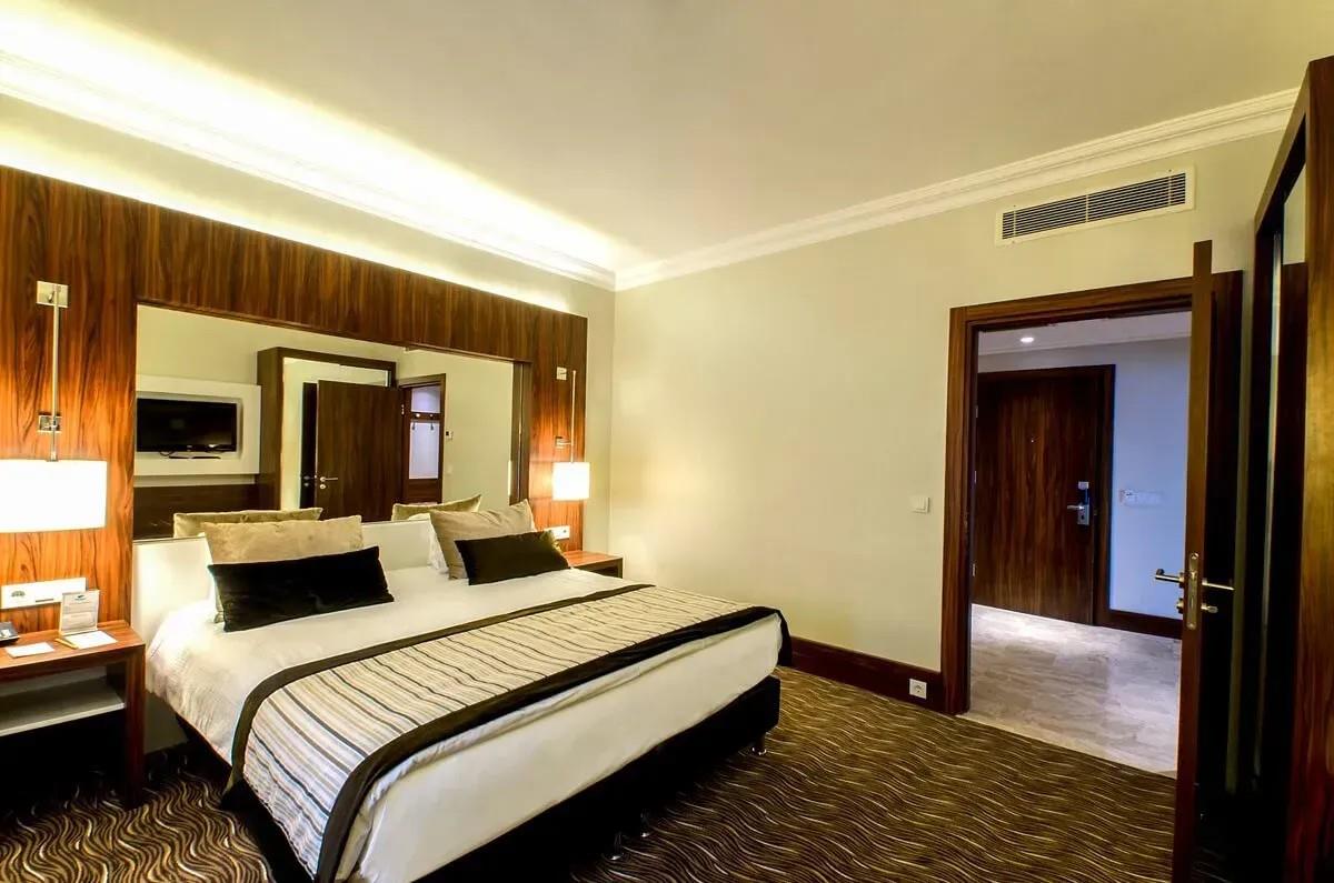 Seçkin misafirlerimiz, aileler, iş adamları, ekonomi ve iş çevreleri için yeşil alanların yanı sıra, gürültüsüz, sade, ferah odalarımız; Ekonomi, Standart, Engelli, Lüks Superior, Aile odası ve Suit oda kategorilerinde tasarlanmıştır. 286 oda, 588 standart yatak ve ilave yatak seçenekleri ile 860 kişilik konaklamaya imkan sunan otelimiz